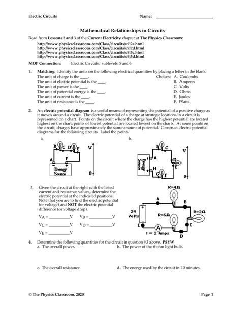Read Online PHYSICS CLASSROOM MATHEMATICAL RELATIONSHIPS IN CIRCUITS ANSWERS Ebook Doc