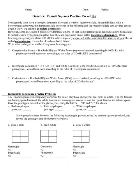 Download Genetics Punnett Squares Practice Packet Answer Key Ebook PDF